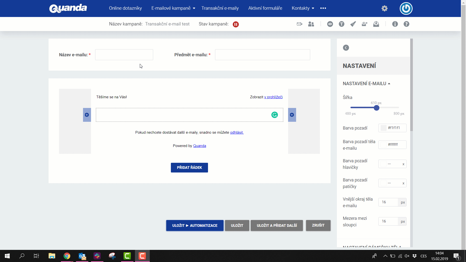 - Poté transakční e-mail uložte a aktivujte podle návodu na začátku tohoto článku.